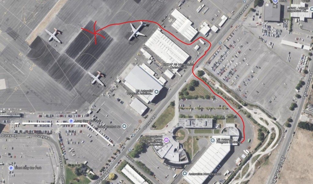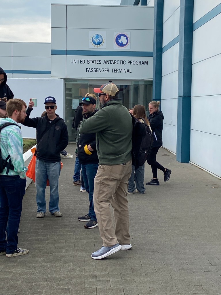 We went and tried on all our ECW(Extreme Cold Weather) gear at the CDC(Clothing Distribution Center). Again, I didn’t take enough pics there, but I did in the past so I’ll show more pics of it in a later post. After we were finished trying all the ECW on and making sure we have everything we need, then we were all waiting for our shuttle back to the hotel outside the USAP Passenger Terminal. Tomorrow we’ll put on all our ECW and then go into the passenger terminal to get a briefing and then go get on the plane.