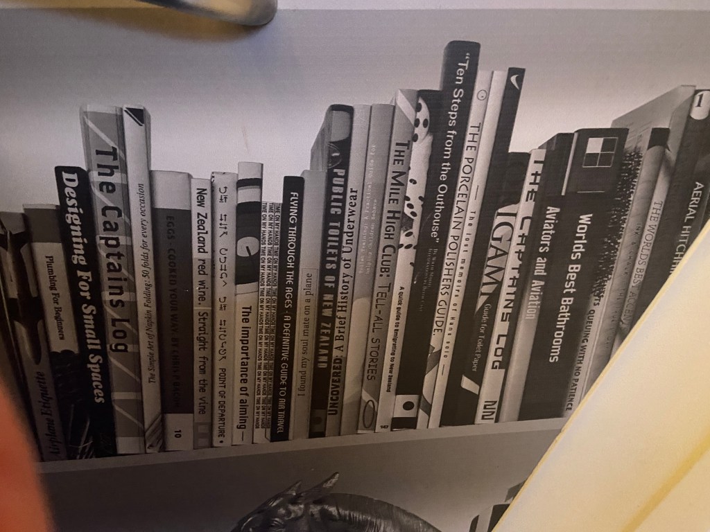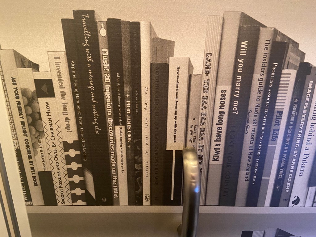 I forgot to take any photos of anything before I got on the plane, but you’ve probably all seen an airport. The wallpaper in the bathroom in the plane on the big flight from California to New Zealand was kind of funny, so I thought you might like it. Haha