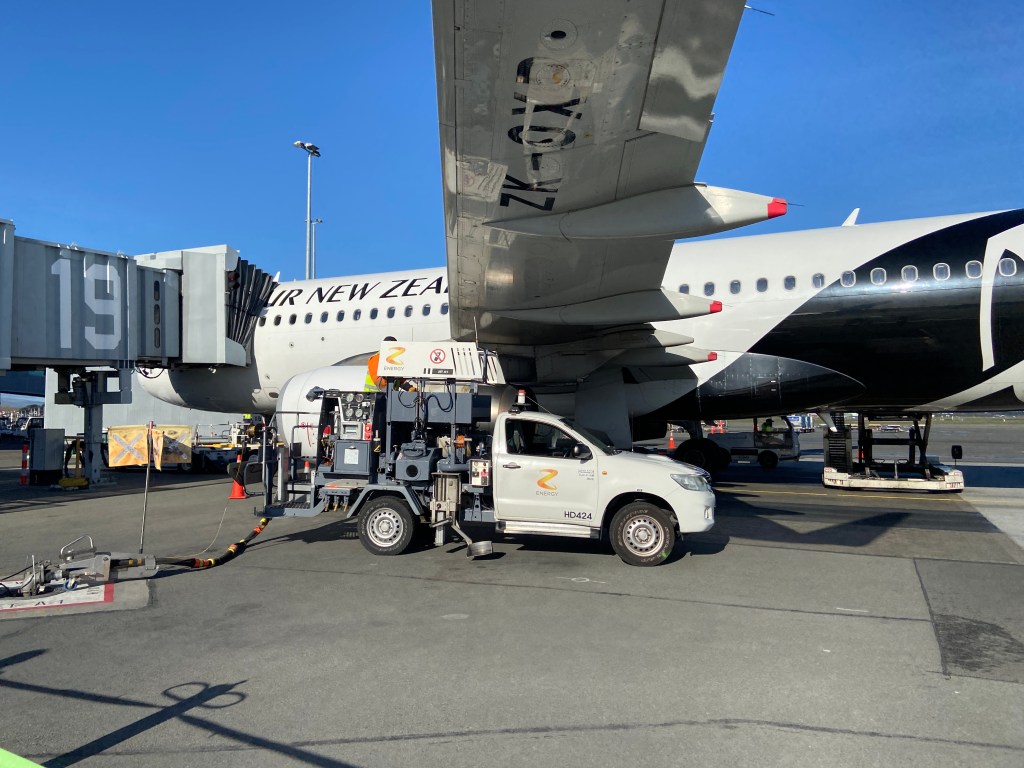 This is our plane we took in New Zealand from Auckland to Christchurch. Getting filled up with the go-go juice.