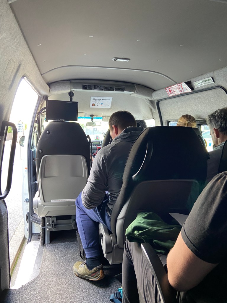In the shuttle waiting for a couple more people so we can get to the hotel so I can take a shower and take a nap! I was tired.