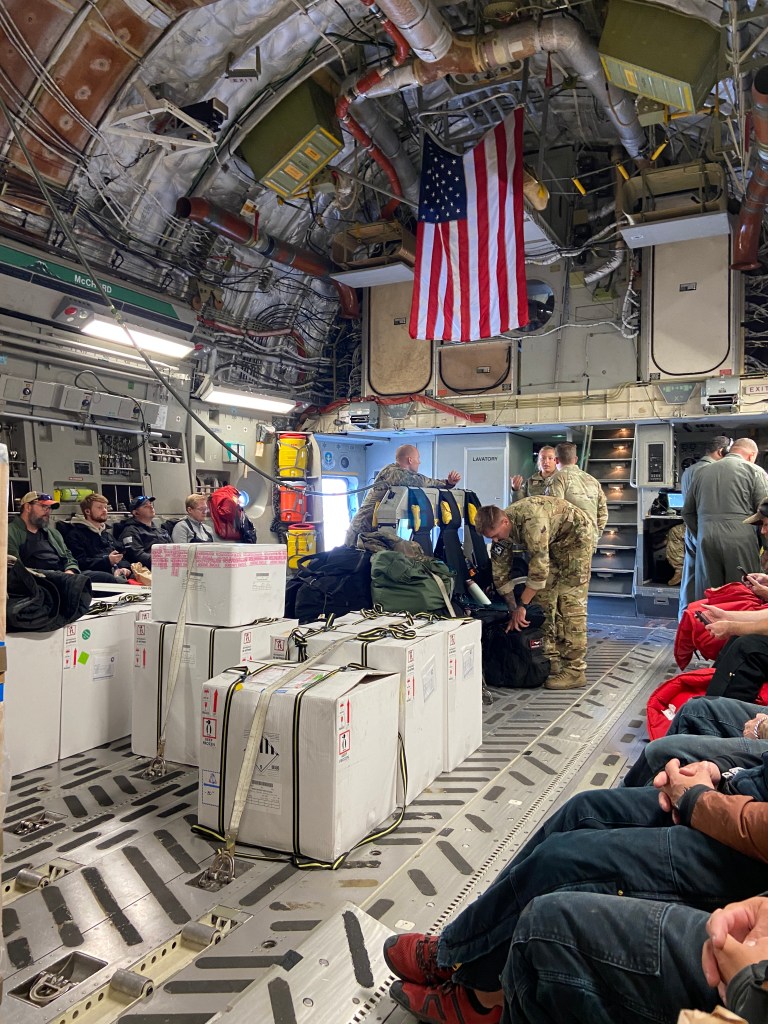 Operation Deep Freeze is what the military calls what we’re doing down here. The C-17s we fly on, the one in these photos, are flown by active duty US Airforce folks who work out of McChord airbase in Washington state.