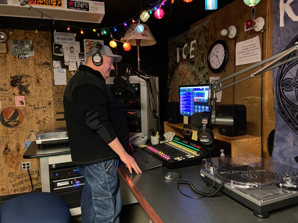 Me being a DJ and playing some music for everyone to listen to. Ice Radio 104.5FM! 🙂